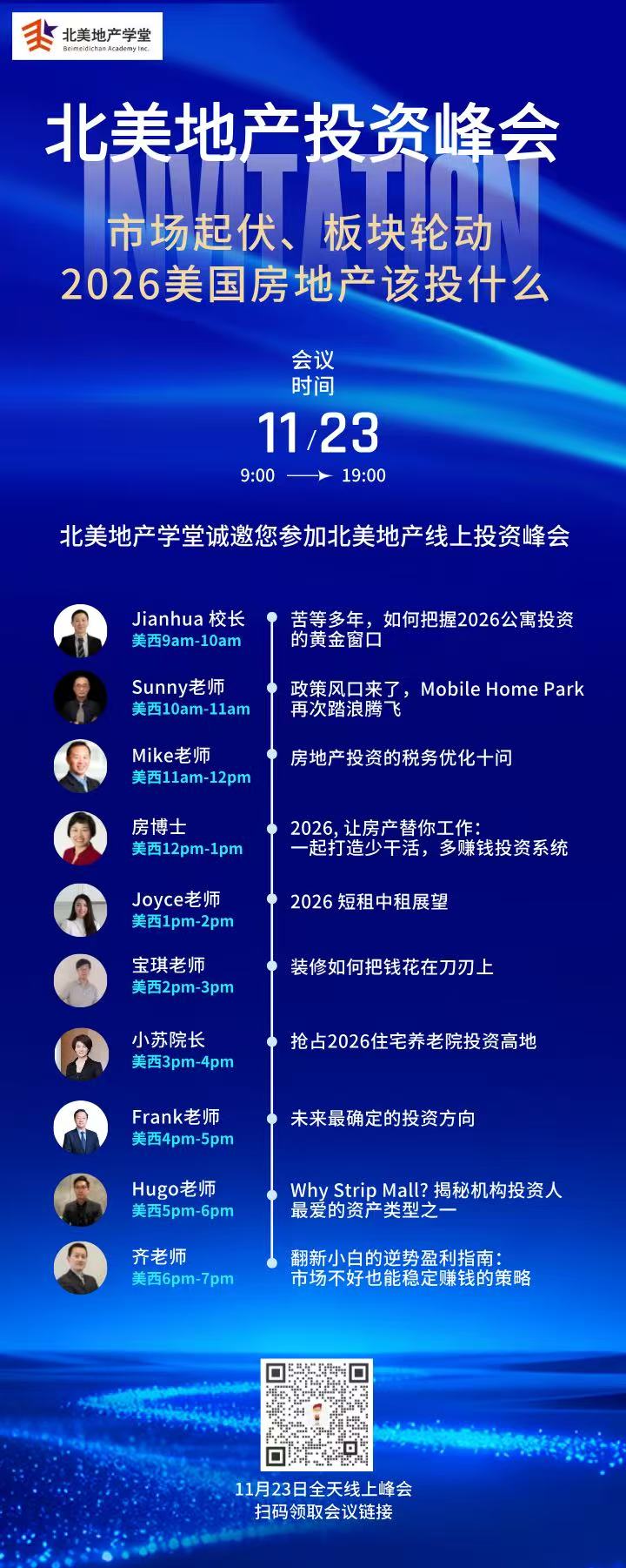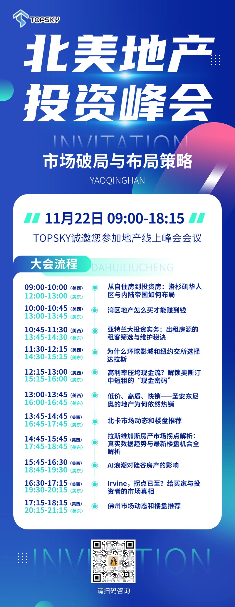 2025年11月22-23日第8届北美地产学堂&TopSky北美地产投资在线论坛
