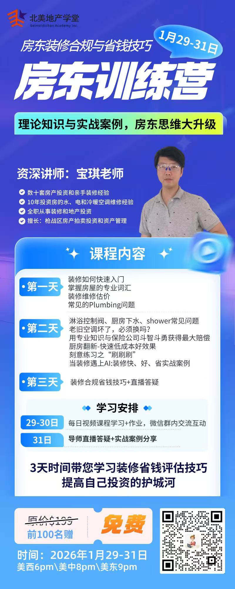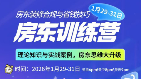 🔥 别再踩坑了!北美地产学堂「房东装修合规与省钱技巧训练营」1月29-31日免费开营!