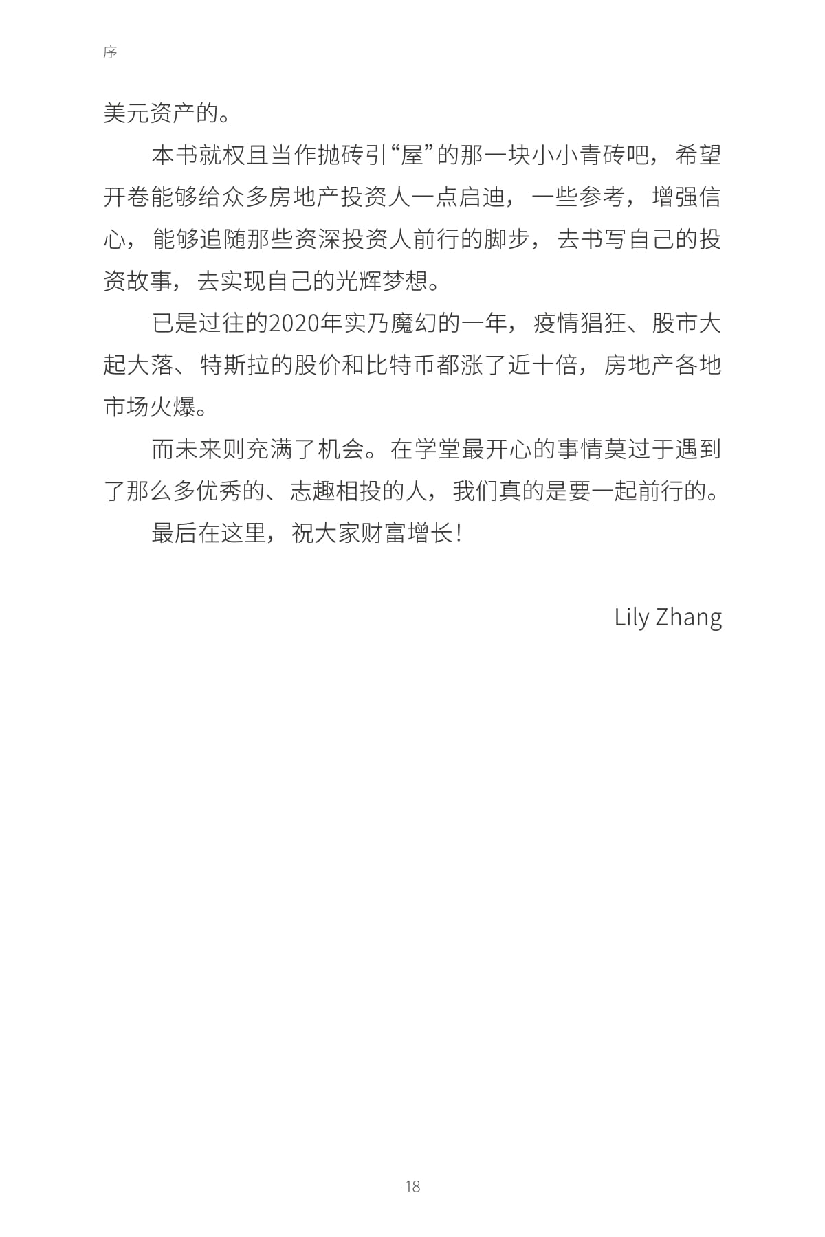 本书为房地产投资系列读物的第一本,我们深信并且期待会有更多在学堂平台上交流的投资伙伴们,能将您的投资故事分享到第二本、第三本……更多本书中去。