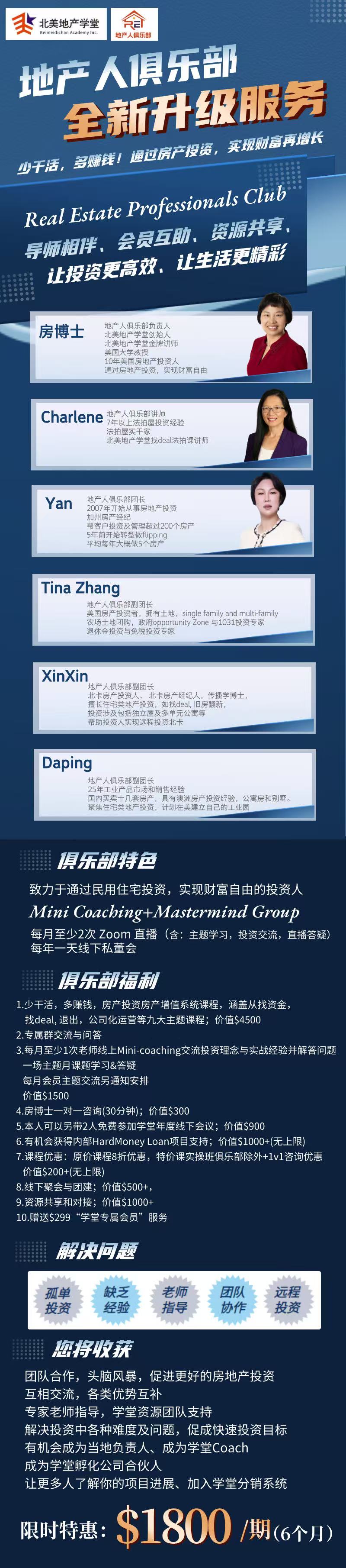 地产人俱乐部即于2024年1月启航,与认可学堂且有一定房地产投资经验的学堂学员共同组建,利用学堂在美国房地产方面优势,布局全美房地产市场,帮助学堂学员投资人在民宅投资方面有更好更快更稳健的发展!