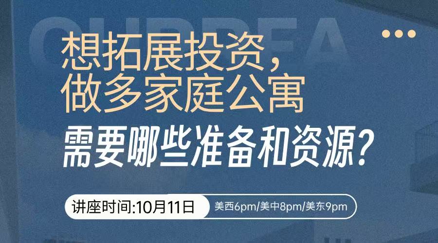 备注: 10月11日美西6pm-想拓展投资做多家庭公寓需要哪些准备和资源?